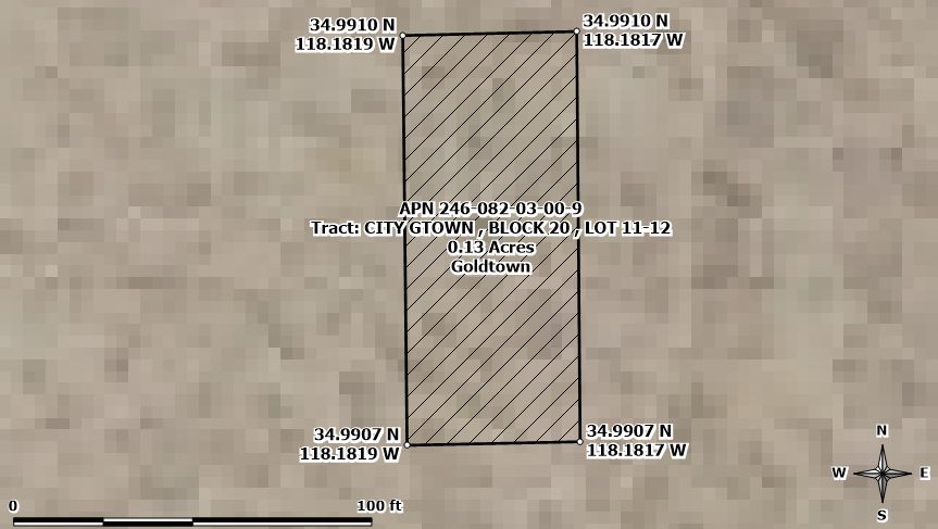 RARE FIND! Two adjoining lots sold as one large property in Goldtown which is a small subdivision located in Kern County, Southern California. It boasts a central location between the towns of Rosemond and Mojave. The lots are easily accessible, situated right off Silver Queen Road and Freeway CA 14. They are ideal for camping and recreation, and they offer an excellent opportunity to start a land portfolio with minimal capital. Additionally, a large gold mining operation is nearby, making these lots very interesting.