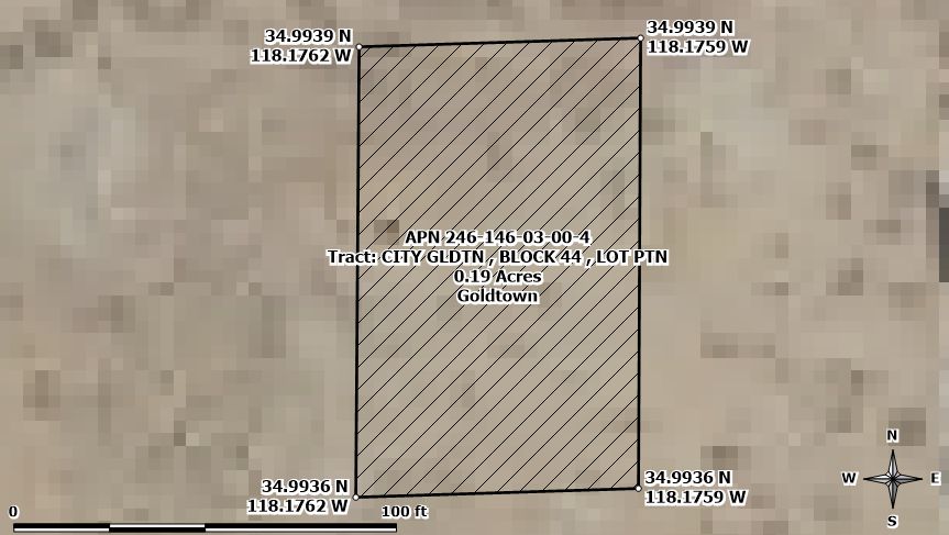 RARE LARGE PROPERTY – Three adjoining parcels sold as one large property. Goldtown is a small subdivision located in Kern County, Southern California. It boasts a central location between the towns of Rosemond and Mojave. The lots are easily accessible, situated right off Silver Queen Road and Freeway CA 14. They are ideal for camping and recreation, and they offer an excellent opportunity to start a land portfolio with minimal capital. Additionally, a large gold mining operation is nearby, making these lots very interesting.