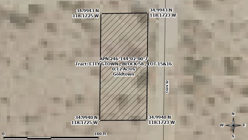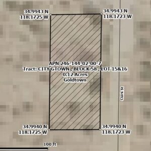 RARE FIND! Two adjoining lots sold as one large property in Goldtown which is a small subdivision located in Kern County, Southern California. It boasts a central location between the towns of Rosemond and Mojave. The lots are easily accessible, situated right off Silver Queen Road and Freeway CA 14. They are ideal for camping and recreation, and they offer an excellent opportunity to start a land portfolio with minimal capital. Additionally, a large gold mining operation is nearby, making these lots very interesting.
