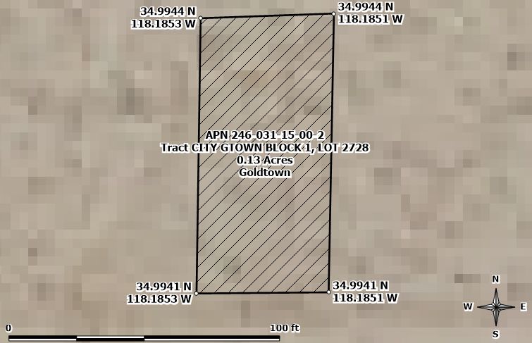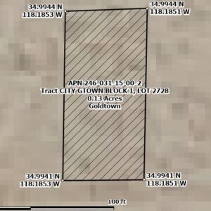 RARE FIND! Two adjoining lots sold as one large property in Goldtown which is a small subdivision located in Kern County, Southern California. It boasts a central location between the towns of Rosemond and Mojave. The lots are easily accessible, situated right off Silver Queen Road and Freeway CA 14. They are ideal for camping and recreation, and they offer an excellent opportunity to start a land portfolio with minimal capital. Additionally, a large gold mining operation is nearby, making these lots very interesting.